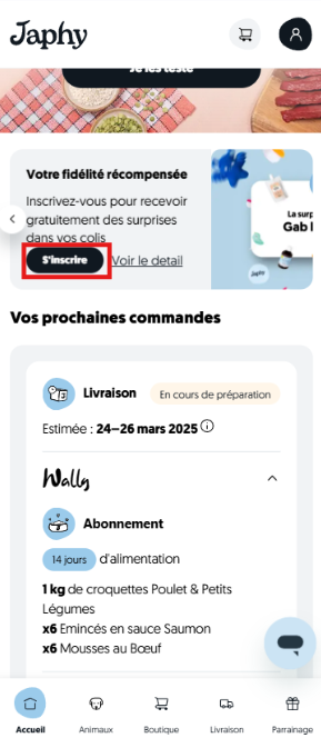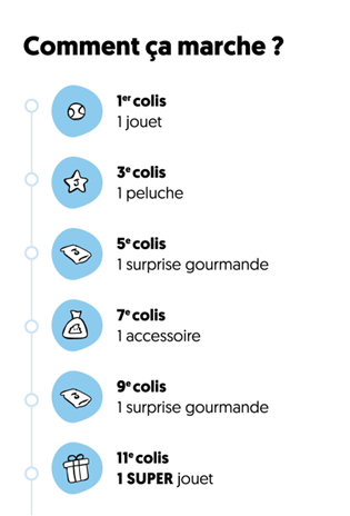 Vous recevrez votre premier cadeau à compter du prochain colis à compter de votre date d’inscription au programme fidélité.